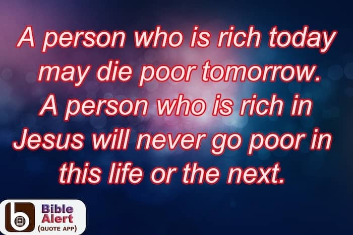A person who is rich today may die poor tomorrow. A person who is rich in Jesus will never go poor in this life or the next.